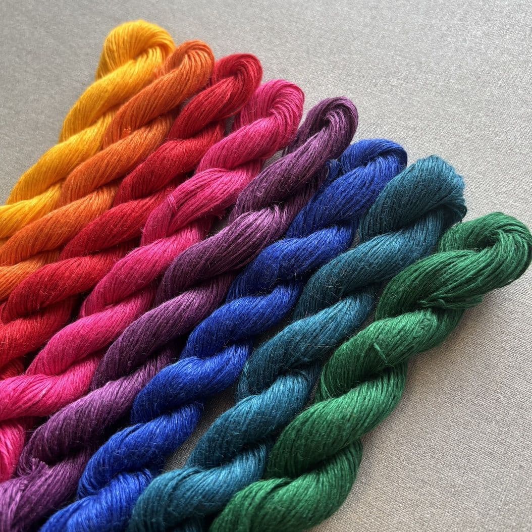 Pack of 8 Linen Mini Hanks - perfect for multi-colour projects such as knitted stripes or crochet motifs, for embroidery or as accents in weaving.